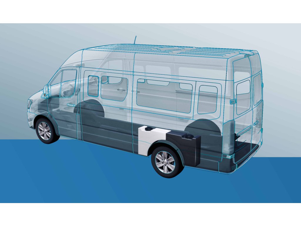Nádrž D-50 o objemu 50 litrů je speciálně navržena pro montáž do podběhů kol mobilních domů, obytných přívěsů, cateringových vozů a servisních dodávek. Díky úzké konstrukci perfektně využívá omezený prostor a odolává dlouhým cestám i vibracím během přepravy.