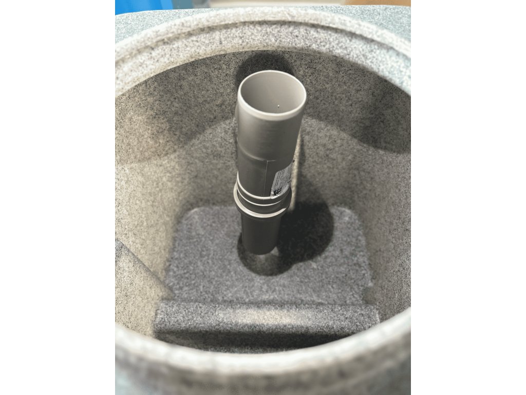 Princip činnosti a konstrukce: Znečištěná voda vstupuje vstupním otvorem a proudí zakřivenou trubkou, která snižuje turbulenci a umožňuje efektivní gravitační oddělení frakcí. Těžší částice jako zbytky jídla padají na dno a vytváří vrstvu sedimentu, tuky a oleje plavou na povrch, zatímco čistá voda zůstává uprostřed. Speciální přepážka ve spodní části zpomaluje průtok a zabraňuje pronikání mastnoty do odtoku.