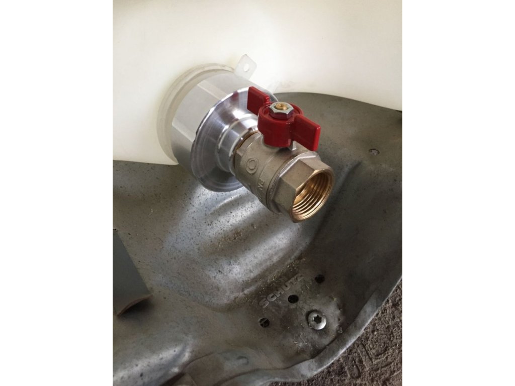 Tento hliníkový reduktor nahrádza celý výpustný ventilKontajner IBC. Redukcia je namontovaná priamo na nádrži, a nie na plastovom výstupnom ventile nádoby IBC.