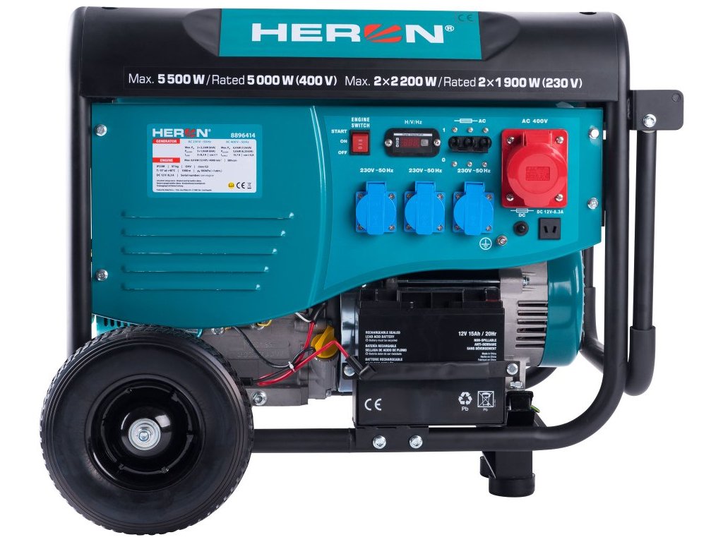 Benzínová elektráreň 13 HP / 5,5 kW / 6,8 kVA (400 V); 2x 2,2 kW (230 V) HERON