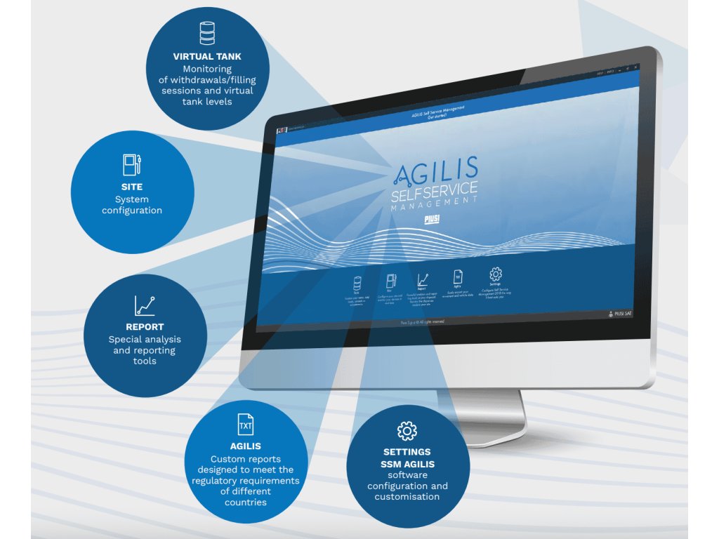 SELF SERVICE MC umožňuje monitorovanie a riadenie spotreby AdBlue vďaka elektronickému systému správy užívateľov. Pomocou PINu alebo kľúča je možné autorizovať prístup až pre 250 užívateľov. Zariadenie zaznamenáva všetky výdavky a je kompatibilné so softvérom SSM AGILIS, ktorý umožňuje detailný reporting, export dát a komplexnú správu výdaja v rámci celej flotily. Systém môže pracovať samostatne alebo v kombinácii so softvérom podľa potrieb prevádzky.