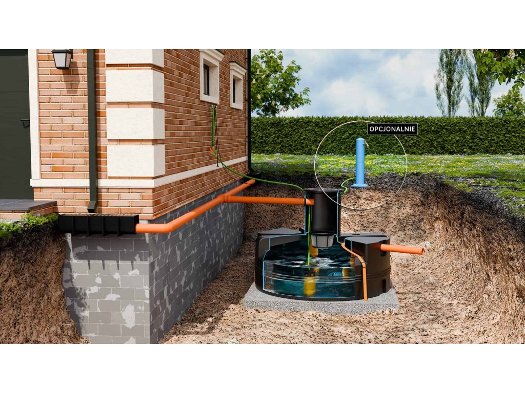 Nádrž obsahuje nastaviteľnú nadstavbu s regulovateľnou výškou 20-81 cm, ktorá znižuje tlak zeminy na povrch a umožňuje prispôsobenie rôznym podmienkam inštalácie. Veľký prístupový kryt je zaistený imbusovými skrutkami proti neoprávnenému prístupu. Pod krytom sa nachádza odnímateľný filtračný kôš pre efektívne predčistenie vody. Vstavané montážne rukoväte uľahčujú manipuláciu pri inštalácii.