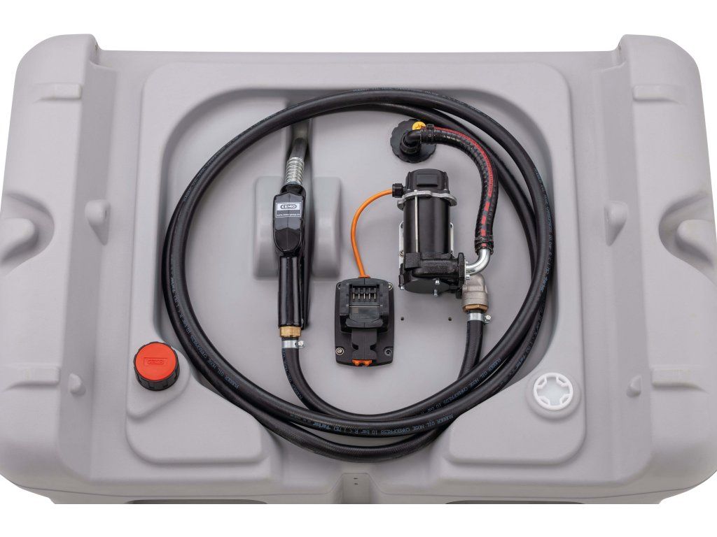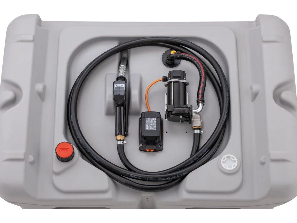 Nádrž je vybavená výkonným elektrickým čerpadlom s napájaním 18 V CAS, ktoré ponúka tichú prevádzku a spoľahlivý výkon. V závislosti od variantu je možné zvoliť ponorné alebo povrchové čerpadlo a tiež variant s batériou a nabíjačkou alebo bez nich.